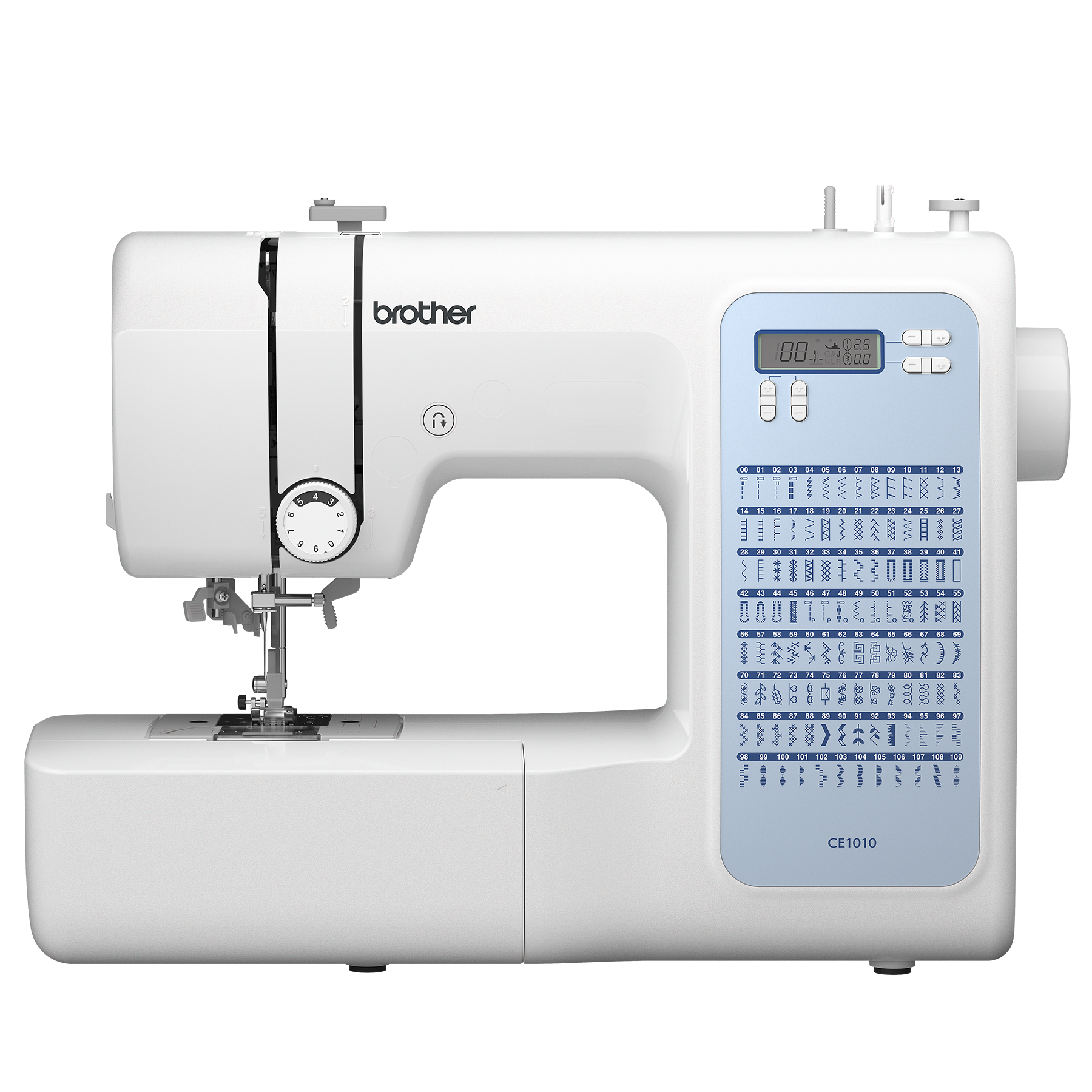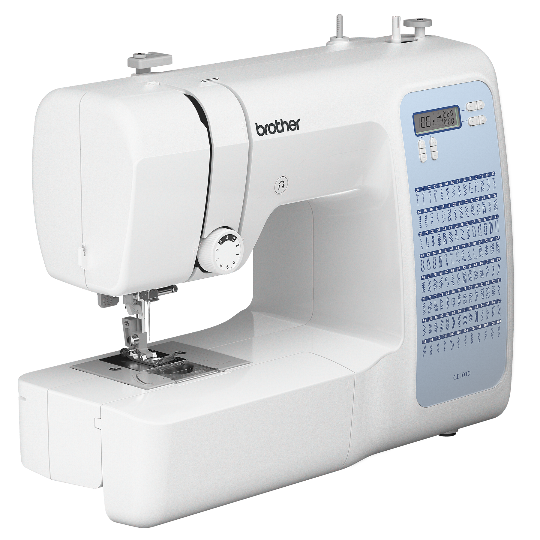 Brother CE1010 Computerized Sewing Machine is reliable, affordable and user-friendly. Great for basic mending and garment construction, it offers 110 built-in stitches, 8 1-step buttonholes, LCD stitch selection, LED-lighting, advanced needle threading, and so much more. See full product description