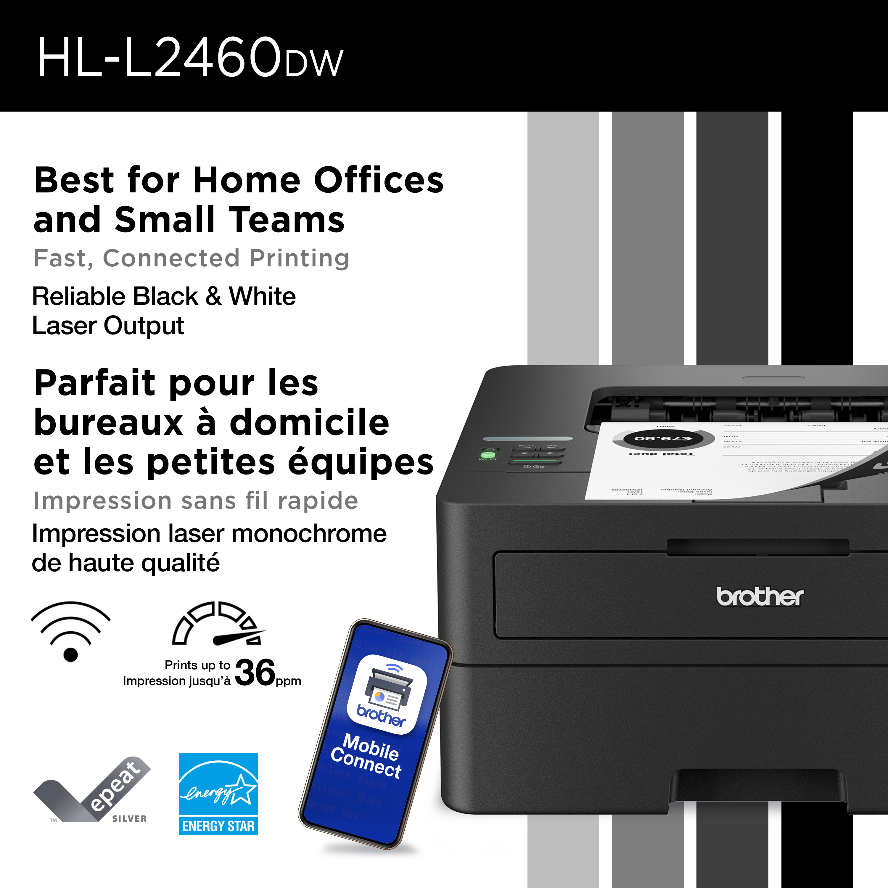 Download Product BrochureBrother HL-L2460DW Home Office-Ready Monochrome Laser Printer with 700 Prints In-box, Duplex and Mobile Printing with Refresh Subscription Option