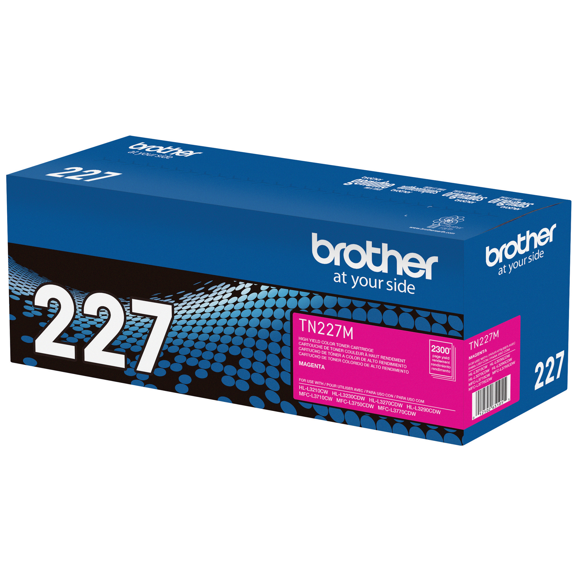 Delivering superior quality and outstanding reliability, Brother Genuine TN-227MS High Yield Magenta Toner Cartridges produce crisp, professional printing with an up to 2,300-page yield. Intelligently engineered to work seamlessly with your Brother printer, using only Brother Genuine Toner Cartridges guarantees consistent output that withstands the test of time. Visit www.brother.ca/en/environment for more information on Brother s environmentally responsible way for customers to dispose of their Brother branded products, including end-of-life cartridges. For use with Brother printer and all-in-one models: HL-L3210CW, HL-L3270CDW, HL-L3290CDW, MFC-L3710CW, MFC-L3750CDW and MFC-L3770CDW.