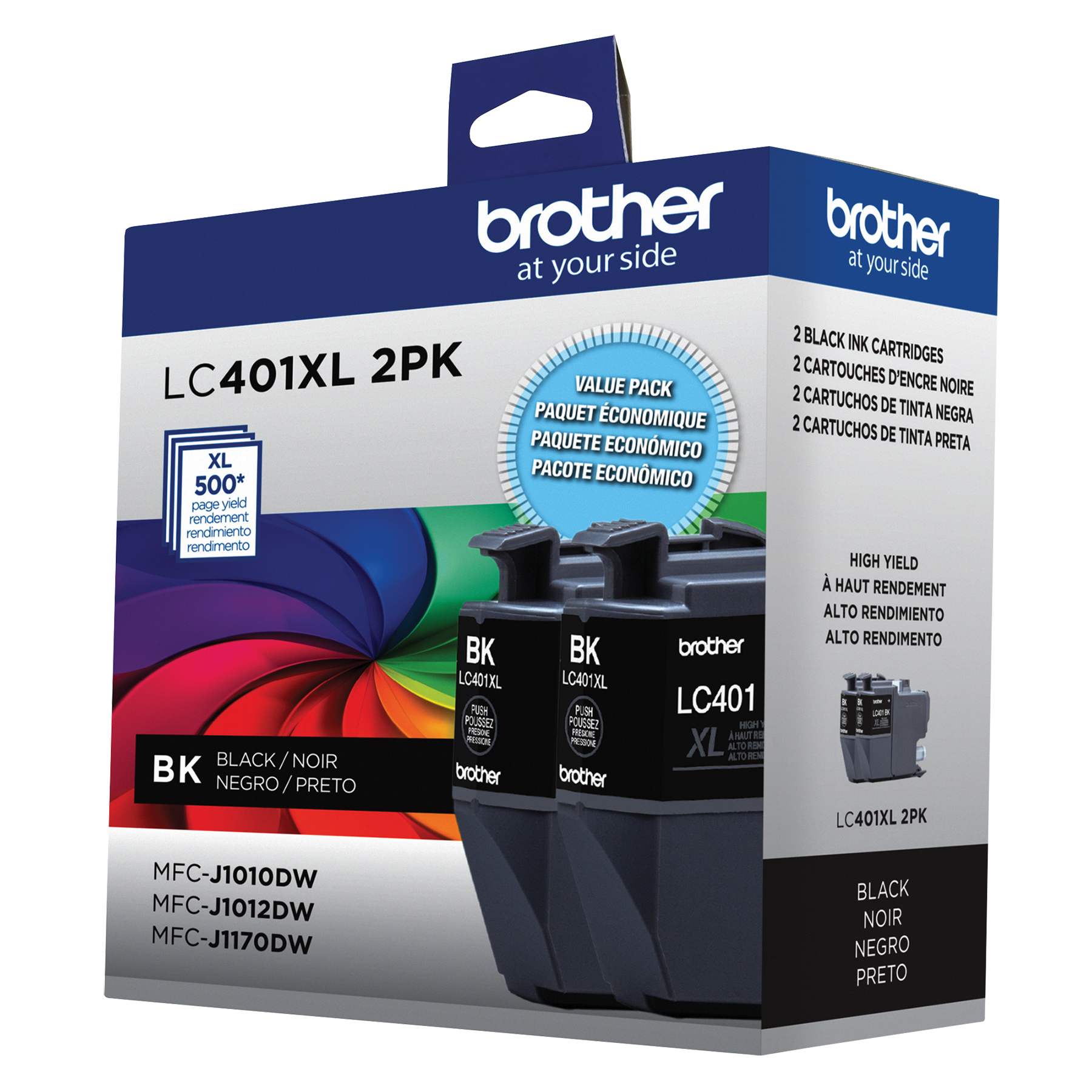 Cet ensemble de 2 cartouches d'encre authentiques noire à haut rendement LC401XL2PKS Brother permet d'obtenir des impressions noires de haute qualité sur lesquelles vous pouvez compter jusqu'à 500 pages par cartouche. Intelligemment conçu comme un système d'impression complet, il fonctionne de façon transparente avec votre imprimante à jet d'encre Brother pour produire des résultats nets et une qualité d'impression supérieure et constante. Les cartouches d'encre LC401XLBKS de Brother peuvent être utilisées avec les imprimantes tout-en-un à jet d'encre couleur Brother suivantes : MFC-J1010DW, MFC-J1012DW and MFC-J1170DW.