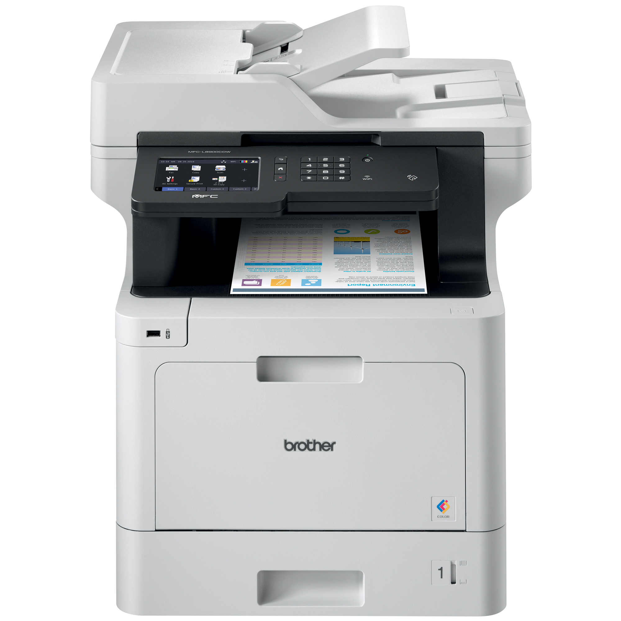 - Écran tactile couleur de 5 pouces. Permet une navigation facile dans les menus et la création de jusqu'à 64 raccourcis personnalisés. De plus, numérisez vers des services infonuagiques professionnels populaires directement à partir de l'écran tactile, notamment : EVERNOTE®, DROPBOX, GOOGLE DRIVE, ONENOTE® et plus encore.